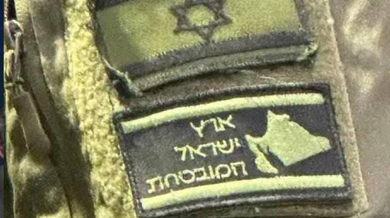 Gazza’de devam eden soykırım sırasında, bir İsrail askeri üniformasında “Büyük İsrail” haritası yamasıyla görüntülendi. TRT World
